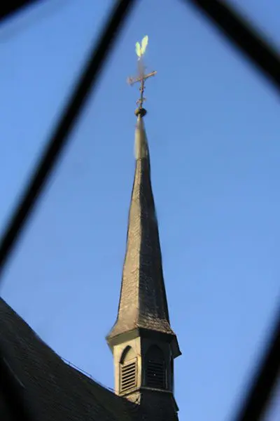 Kirche St. Heinrich mit Kirchturmhahn und Läutewerk