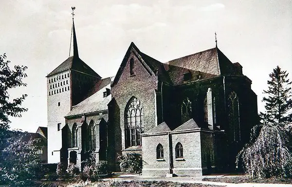 Grundsteinlegung 1902, erbaut 1903, Baustil neuromanisch, Baukosten 30.000 Mark, 9 Rektoren/Pfarrer in der selbständigen Pfarrei, Pfarrkirche 1910-1979, Höhe bis Dachreiterspitze 17 m, 1 Glocke, nördlichste Kirche im Bistum Aachen